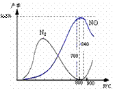 氨催化氧化是硝酸工业的基础,在某催化剂作用下只发生主反应①和副反应②,有关物质产率与温度