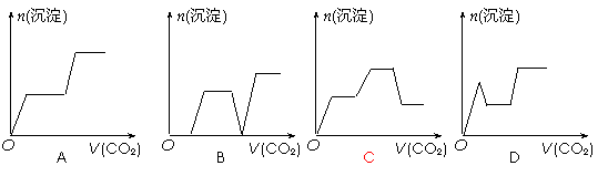 20.将足量的CO2不断通入KOH、Ca(OH)2、KAlO2的混合溶液中,生成沉淀与通入CO2的量的关系可表示为 ( )