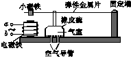图示为一种利用电磁原理制作的充气泵的结构示意图,其工作原理类似打点计时器.当电流从电磁铁的接线柱a流入,吸引小磁铁向下运动时,以下选项中正确的是[2002年高考·上海物理卷 ]( )