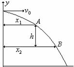 例题:如图所示,一个同学做平抛实验时,只在纸上记下过起点的纵坐标y方向,但未记录平抛运动的起点,并描下了平抛运动的一段轨迹,在轨迹上取A、B两点,用刻度尺分别测量出它们到y轴的距离x1、x2以及AB的竖直距离h,则小球平抛运动的初速度