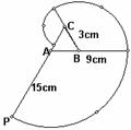 8、如图,有一个边长为6cm的正三角形木块ABC,点P是CA延长线上的一点,在A、P之间拉一条长为15cm细丝,握住点P,拉直细线,把它全部紧紧绕在△ABC木块上(缠绕时木块不动),则点P运动的路线长为(π取3.14,精确到0.1cm) ( )