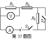 如图所示,电源电压不变。当开关S1闭合S2断开时,电压表示数为4V,电流表示数为I1,电阻R2与R3的电功率之和为2.8W;当开关S1 、S2闭合时,电流表示数为I2,电阻R2的电功率为3.6W。