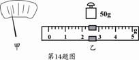 ⑵在调节天平时,发现指针位置如图14甲所示,此时应将平衡螺母向 调(选填“左”或“右”).