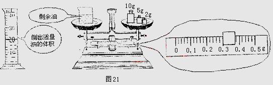 (09威海).下面是小方设计的“测食用油密度”的实验方案:用天平测出空烧杯的质量m1,向烧杯内倒入适量食用油,再测出烧杯和食用油的总质量m2,然后把烧杯内的食用油全部倒入量筒内,读出量筒内食用油的体积为V1,根据他的设计,回答下面的问题: