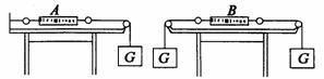 (09杭州)13.如右图所示,弹簧秤和细线的重力及一切摩擦不计,物重G= 1N,则弹簧秤A和B的示数分别为