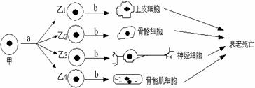 37.下图为人体某早期胚胎细胞所经历的生长发育阶段示意图,图中甲、乙为两个阶段的细胞,a、b表示发育变化的模式过程。下列叙述正确的是