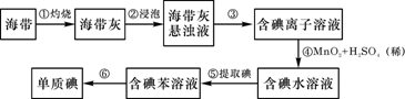 (3)2I-+MnO4-+4H+==Mn2++I2+2H2O(4)苯与水互不相溶,碘在苯中的溶解度比在水中大。(5)检验单质碘方法:取少量提取碘后的水溶液于试管中,加入几滴淀粉试液;观察是否出现蓝色(如果变蓝,说明还有单质碘)。