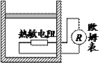 如图所示,带有活塞的气缸中封闭一定质量的理想气体(不考虑分子势能)。将一个热敏电阻(电阻值随温度升高而减小)置于气缸中,热敏电阻与气缸外的欧姆表连接,气缸和活塞均具有良好的绝热性能,气缸和活塞间摩擦不计。则( )