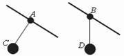 如图所示,两个倾角相同的滑杆上分别套有A、B两个圆环,两个圆环上分别用细线悬吊着两个物体C、D,当它们都沿滑杆向下滑动时,A的悬线与杆垂直,B的悬线竖直向下。则下列说法中正确的是( )