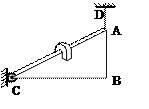 如图所示,均匀的直角三角板ABC重为20N,可绕过C点、垂直于板面的水平转动轴自由转动,A点用竖直线AD拉住,当BC处于水平平衡位置时AD线上的拉力大小为F。后将一块凹槽口朝下、重为4N的木块卡在斜边AC上,木块沿斜边AC匀加速下滑,当木块经过AC的中点时细线的拉力大小变为F+DF,则下述结论中正确的是( )