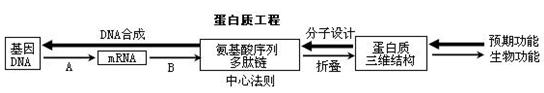 14.蛋白质工程是新崛起的一项生物工程,又称第二代基因工程。下图示意蛋白质工程流程,图中A、B在遗传学上依次表示