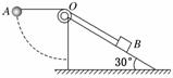 5.(2010·徐州模拟)如图4所示,倾角为30°的斜面体置于水平地面上.一根不可伸长的轻绳两端分别系着小球A和物块B,跨过固定于斜面体顶端的小滑轮O,A的质量为m,B的质量为4m.开始时,用手托住A,使OA段绳恰处于水平伸直状态(绳中无拉力),OB绳平行于斜面,此时B静止不动.将A由静止释放,在其下摆过程中,斜面体始终保持静止,下列判断中错误的是 ( )