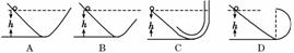 9.如图8所示,A、B、C、D四图中的小球以及小球所在的左侧斜面完全相同,现从同一高度h处由静止释放小球,使之进入右侧不同的竖直轨道:除去底部一小段圆弧,A图中的轨道是一段斜面,高度大于h;B图中的轨道与A图中的轨道相比只是短了一些,且斜面高度小于h;C图中的轨道是一个内径略大于小球直径的管道,其上部为直管,下部为圆弧形,与斜面相连,管的高度大于h;D图中的轨道是个半圆形轨道,其直径等于h.如果不计任何摩擦阻力和拐弯处的能量损失,小球进入右侧轨道后能到达h高度的是 ( )