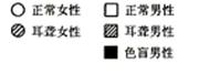5.(09安徽卷)已知人的红绿色盲属X染色体隐性遗传,先天性耳聋是常染色体隐性遗传(D对d完全显性)。下图中Ⅱ2 为色觉正常的耳聋患者,Ⅱ5为听觉正常的色盲患者。Ⅱ4(不携带d基因)和Ⅱ3婚后生下一个男孩,这个男孩患耳聋、色盲。既耳聋有色盲的可能性分别是