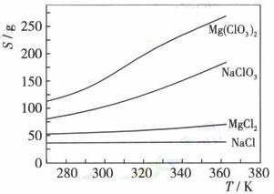 (4)①分析该题可以结合硝酸钾与氯化钠的分离方法思考,同时要注意题给图示,从图示上我们不难得到下列信息,一是相同温度时氯酸镁的溶解度最大氯化钠溶解度最小,二是氯酸镁溶解度随温度变化最大,氯化钠溶解度随温度变化最小。所以控制反应温度的变化,可以控制可溶性物质的分离。