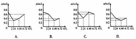 19.往含0.2mol KOH和0.1mol Ca(OH)2的溶液中持续地通入CO2气体,当通入气体的体积为6.72L(标准状况)时立即停止,则在这一过程中,溶液中离子的物质的量n和通入CO2的体积V的关系示意图正确的是(气体的溶解和离子的水解忽略)