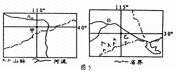 A.甲地位于乙地的东南方 B.甲图中河流属乙图河流的上游