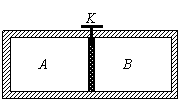 20、在绝热的缸中封闭着两部分同种类的气体A和B,中间用绝热的活塞隔开,活塞用销钉K固定着。开始时两部分气体的体积和温度都相同,气体A的质量大于B的质量。撤去销钉后活塞可以自由移动,最后达到平衡。关于B部分气体的内能和压强的大小