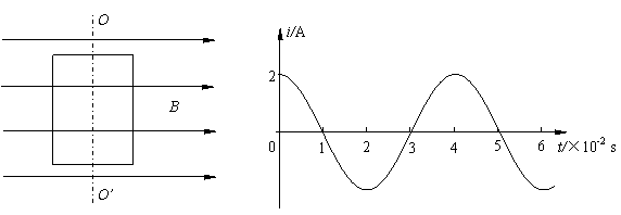 23、(16分)交流发电机的原理如左下图所示,闭合的矩形线圈放在匀强磁场中,绕OO’轴匀速转动,在线圈中产生的交变电流随时间变化的图象,如右下图所示,已知线圈的电阻为R=2.0 Ω。求: