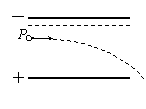如图所示,两个平行放置的金属板,上板带负电,下板带等量的正电,两板的电势差为U。一个带电粒子从P点以某一水平初速度进入电场,在电场中飞行的时间为t,离开电场时的动能为EK。若保持两板所带电荷量不变,只将上板向下移到图中虚线所示位置,两板间的电势差为U’,带电粒子在电场中飞行的时间为t’,离开电场时的动能为EK’。