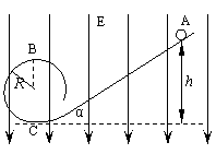 23.(18分)如图所示,在竖直向下的匀强电场中有一绝缘的光滑离心轨道,一个带负电的小球从斜轨道上的A点由静止释放,沿轨道滑下,已知小球的质量为m,电量大小为-q,匀强电场的场强大小为E,斜轨道的倾角为α (小球的重力大于所受的电场力) 。