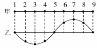 18.在均匀介质中选取平衡位置在同一直线上的9个质点,已知相邻两质点的距离均为L,如图甲所示。一列横波沿此该直线向右传播,t=0时到达质点1,质点1开始向下运动,经时间△t第一次出现如图乙所示的波形,则这列波