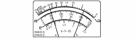 (2)如图所示是一种多用表的表盘,在两次测量中表盘指针位置分别如a和b 所示。若多用表的选择开关处在电阻×10档位,则指针a位置的读数是 Ω;若多用表的选择开关处在直流电压2.5档位,则指针b位置的读数是 V。