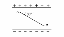 Q=3.0×10-8C,极板上端带正电。现有一电量q=4.0×10-10C的带正电的小球在外力的作用下,从两极板间的A点移动到B点,AB间的距离s=16cm,AB与极板间的夹角θ=30°。
