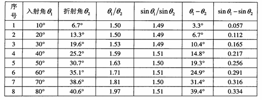 15.某研究性学习小组在探究光的折射过程中,研究折射角与入射角之间的关系,当光由空气斜射入玻璃中时,测得实验数据如下表