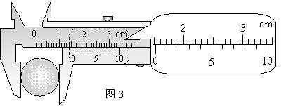 用游标为10分度(测量值可准确到0.1mm)的卡尺测量小球的直径。某次测量的示数如图3所示,读出小球直径d的值为
