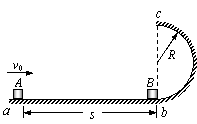 质量m = 0.1㎏的小滑块B放在半圆形轨道末端的b点,另一质量也为m = 0.1kg的小滑块A,以v0 = 2