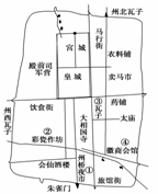 8.下图为北宋末年东京(今开封)示意图,其中设置了两处错误,它们