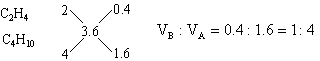 分析:(1)本题是用计算推理方法确定混合烃的组成。1L碳原子数为n的烷烃或烯烃充分燃烧均得到nL CO2。由题意推断,该混合烃只能由碳原子数大于3.6的烷烃和碳原子数小于3.6的烯烃或炔烃组成。它们可能有四种组合,根据每种组合中烷烃和不饱和烃的碳原子数及燃烧后生成CO2的体积可能有四种组合,根据每种组合中烷烃和不饱和烃的碳原子数及燃烧后生成CO2的体积可确定A和B的体积比。例如:若A为C4H10,B为C2H4。设1升混合气中含C4H10为x L,含C2H4为(1-x)L,它们充分燃烧后分别得到4x升CO2和2(1-x)L CO2,根据1升混合气燃烧后得到3.6LCO2,可得4x+2(1-x)=3.6