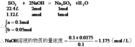 a:设SO2与NaOH完全作用生成Na2SO3