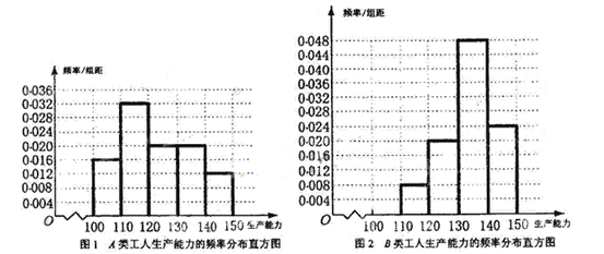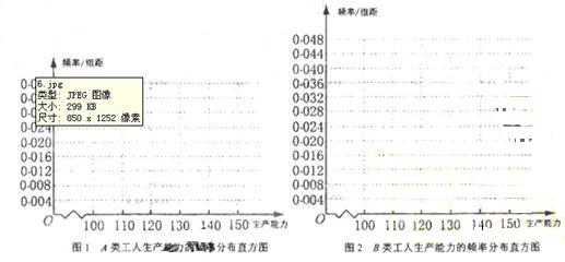 (Ⅱ)从A类工人中抽查结果和从B类工人中的抽查结果分别如下表1和表2