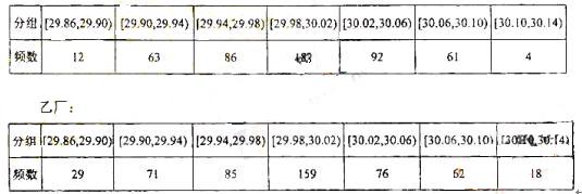某企业有两个分厂生产某种零件,按规定内径尺寸(单位:mm)的值落在(29.94,30.06)的零件为优质品。从两个分厂生产的零件中个抽出500件,量其内径尺寸,的结果如下表: