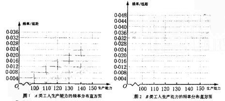 (i)先确定x,y,再在答题纸上完成下列频率分布直方图。就生产能力而言,A类工人中个体间的差异程度与B类工人中个体间的差异程度哪个更小?(不用计算,可通过观察直方图直接回答结论)