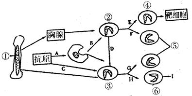 C.①中的造血干细胞全能性较高并能够进行有丝分裂 D. 图中A、B、C、D均属于特异性免疫的感应阶段,E、F、G、H均属于反应阶段