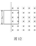 (14分)(2009·全国卷Ⅱ)如图12所示,匀强磁场的磁感应强度方向垂直于纸面向里,大小随时间的变化率=k,k为负的常量.用电阻率为ρ、横截面积为S的硬导线做成一边长为l的方框,将方框固定于纸面内,其右半部位于磁场区域中.求: