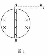 为的导体棒AB,AB由水平位置紧贴环面摆下,当摆到竖