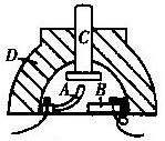 1、如图所示的是一种按钮开关的构造截面图,图中C是按钮,D是外壳,A、B各有接线柱与电路相连接,其中( ) A.A、B、C是导体,D是绝缘体 B.A、B、D是导体,C是绝缘体 C.A、B是导体,C、D是绝缘体 D.C、D是导体,A、B是绝缘体 |