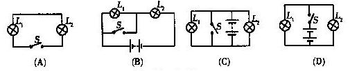 3、在如图所示的各电路中,开关S闭合后,小灯泡L1、L2都能发光的是( )