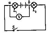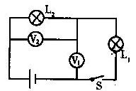 8、如图所示,电源电压是5V并保持不变,开关S闭合后电压表的示数为3V,则( ) A.L1两端的电压为3V B.L2两端的电压为3V C.L2两端的电压为2V D.L1两端的电压为5V |