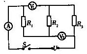 6、如图所示,当S闭合时,电压表V1的示数为3V,电压表V2的示数为4V,电流表A的示数为1A,现将R1和R2对调位置,则下列说法不正确的是( ) A.电流表A示数的仍为1A B.电压表V1的示数可能变,V2的示数一定不变 C.通过三个电阻R1、R2、R3的电流之和仍为1A D.若R2=R3,则电源电压U=5V |