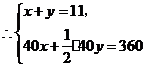 11. 解:设生产奥运会标志x套,生产奥运会吉祥物y套.根据题意,得