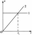 坐标系中作出这两个分运动的v-t图线,如图所示,若平抛运动的时间大于2t1,下列