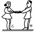 表演,如图所示.已知M甲=80 kg,M乙=40 kg,两人相距0.9 m,弹簧秤的示数为96 N,
