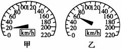 (07山东济宁统考)如图所示是汽车的速度计,某同学在汽车中观察速度计指针位置的变化.开始时指针指示在如图甲所示位置,经过8