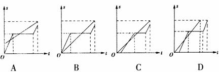 6.(06江苏省部分学校高三模考)小李讲了一个龟兔赛跑的故事:龟、兔从同一地点出发,发令枪响后龟缓慢地向终点跑去,直至到达终点.兔自恃跑得快,让龟跑了一段时间后才开始跑,当它超过龟后便在路旁睡起觉来,醒来一看,龟已接近终点了,于是便奋力追去,但最终还是让龟先到达了终点,据此,我们可以将龟兔赛跑的运动过程用位移--时间图象来表示,正确的是 ( )