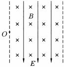 (09年北京卷)19.如图所示的虚线区域内,充满垂直于纸面向里的匀强磁场和竖直向下的匀强电场。一带电粒子a(不计重力)以一定的初速度由左边界的O点射入磁场、电场区域,恰好沿直线由区域右边界的O′点(图中未标出)穿出。若撤去该区域内的磁场而保留电场不变,另一个同样的粒子b(不计重力)仍以相同